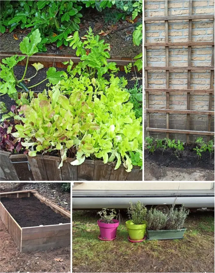 Toch kon ik het niet laten om iets te zaaien. Van stukken ondervloer die uit ons huisje waren gesloopt, maakte ik een kleine bak en vulde die met voedzame aarde en compost. Zo kon ik toch wat slasoorten, radijsjes, bietjes, rucola, een courgetteplant en enkele worteltjes kweken. Daarnaast haalde ik wat tegels naast het huis eruit om ruimte te maken voor tomatenplantjes die mijn moeder had opgekweekt. En natuurlijk mochten wat kruiden in potten niet ontbreken. Terwijl we van ’s ochtends vroeg tot ’s avonds laat aan het klussen waren, vond ik het heerlijk om tussendoor mijn gewassen te verzorgen. Er is niets fijner dan je handen in de aarde te steken en te genieten van de groeiende planten.